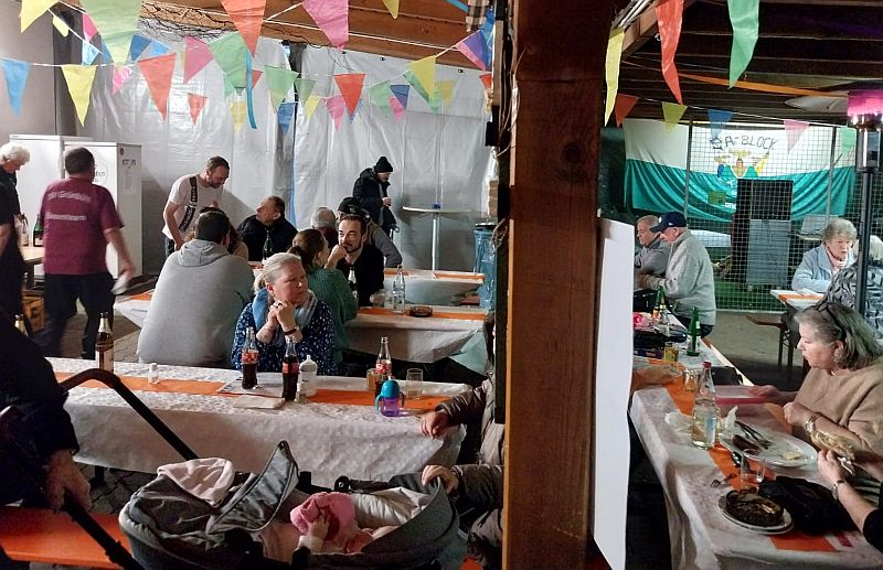 Nach dem Stress, was unser immer noch geschlossenes Vereinsheim anging, tat es richtig gut, die Leute zusammensitzen, plaudern und feiern zu sehen.