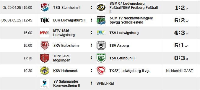 Die Partie des TSV Grünbühl II wurde durch Türk Gücü Möglingen wegen Spielermangel abgesagt