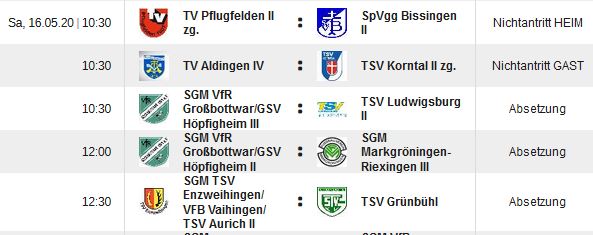 Die Mannschaften von Korntal II und Pflugfelden II wurden zurückgezogen.