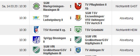 Die Mannschaften von Korntal II und Pflugfelden II wurden zurückgezogen.