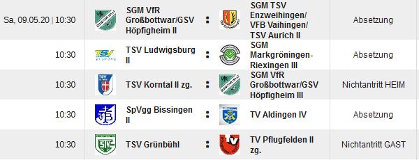Die Mannschaften von Korntal II und Pflugfelden II wurden zurückgezogen.