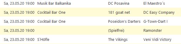 Die Saison 2020-1 wurde von der Dartliga Stuttgart wegen des Corona-Virus komplett abgesagt.