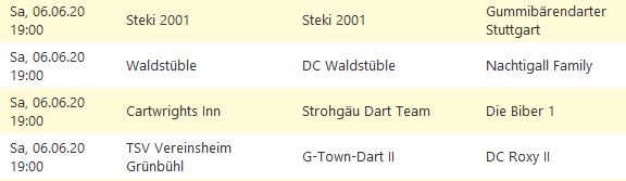 Die Saison 2020-1 wurde von der Dartliga Stuttgart wegen des Corona-Virus komplett abgesagt.