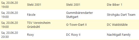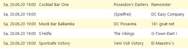 Die Saison 2020-1 wurde von der Dartliga Stuttgart wegen des Corona-Virus komplett abgesagt.