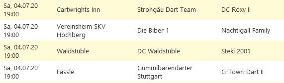 Die Saison 2020-1 wurde von der Dartliga Stuttgart wegen des Corona-Virus komplett abgesagt.