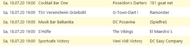 Die Saison 2020-1 wurde von der Dartliga Stuttgart wegen des Corona-Virus komplett abgesagt.
