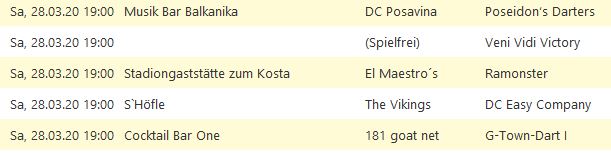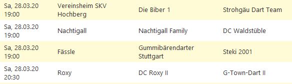Die Saison 2020-1 wurde von der Dartliga Stuttgart wegen des Corona-Virus komplett abgesagt.