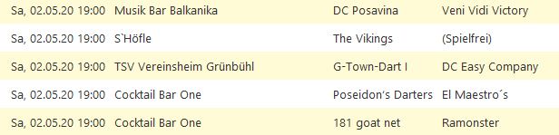 Die Saison 2020-1 wurde von der Dartliga Stuttgart wegen des Corona-Virus komplett abgesagt.