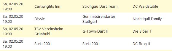 Die Saison 2020-1 wurde von der Dartliga Stuttgart wegen des Corona-Virus komplett abgesagt.