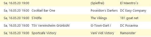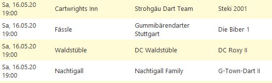 Die Saison 2020-1 wurde von der Dartliga Stuttgart wegen des Corona-Virus komplett abgesagt.