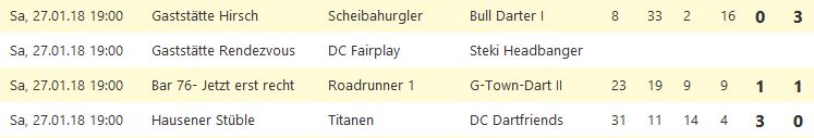 Dartliga Stuttgart, B-Liga, Gruppe 4, 19:00 Uhr: