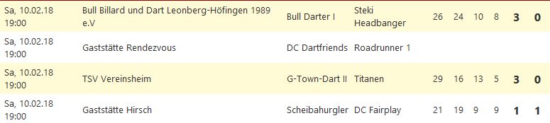 Dartliga Stuttgart, B-Liga, Gruppe 4, 19:00 Uhr: