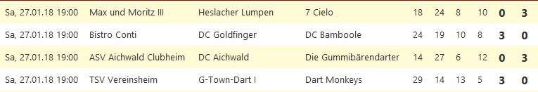 Dartliga Stuttgart, A-Liga, Gruppe 3, 19:00 Uhr: