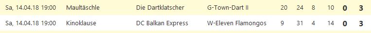 Das Spiel von G Town Dart II gegen "Dartklatscher" vom 1.Spieltag wurde vom 17.03. auf den 14.04. verlegt
