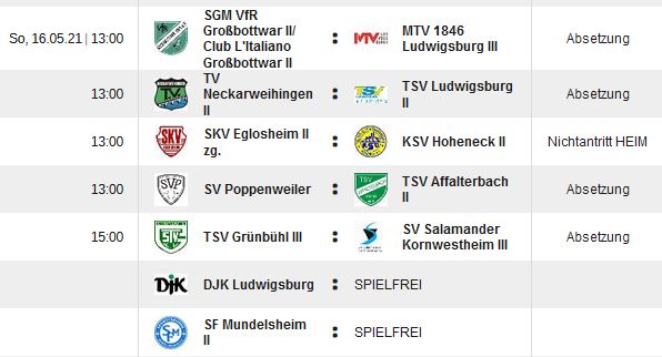 Kreisliga B, Staffel 3, 20.Spieltag