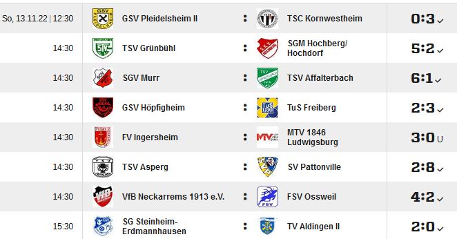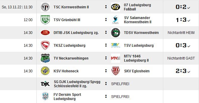 Kreisliga B, Staffel 1, 11.Spieltag