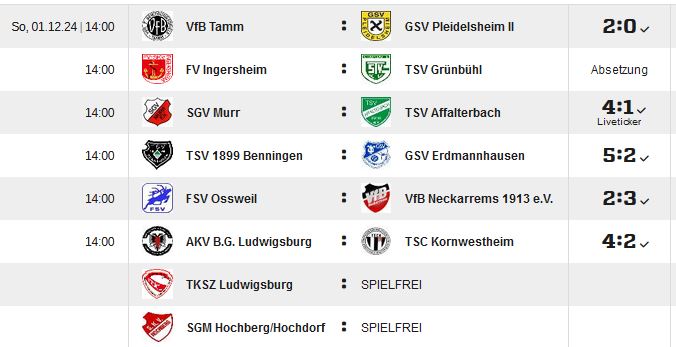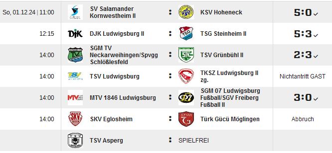 Kreisliga B, Staffel 1, 12.Spieltag