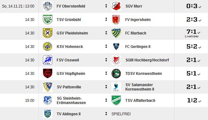 Kreisliga A, Staffel 1, 13.Spieltag: