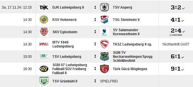 Kreisliga A, Staffel 1, 12.Spieltag