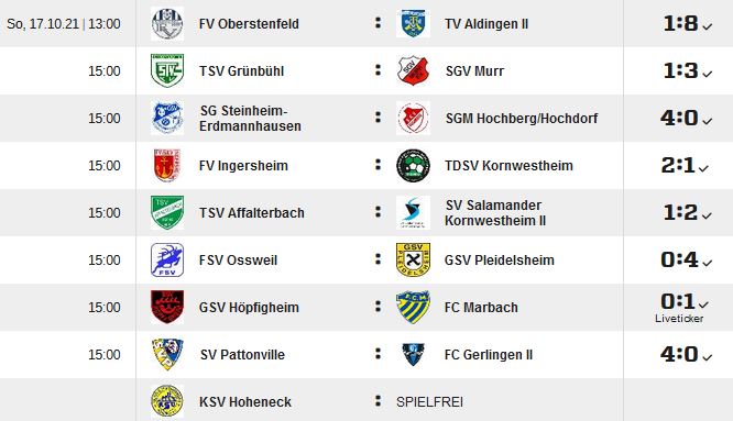 Kreisliga A, Staffel 1, 9.Spieltag: