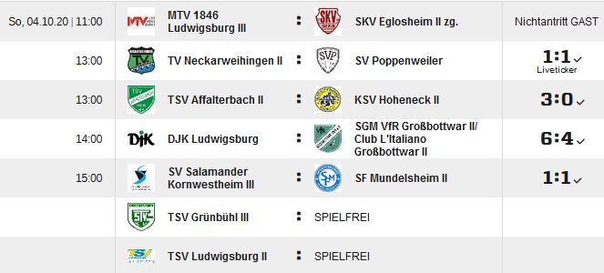 Aktive: gegen Oßweil, TSV II beim TSV Ludwigsburg II