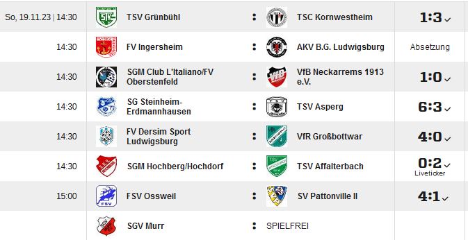 Kreisliga A, 12.Spieltag: