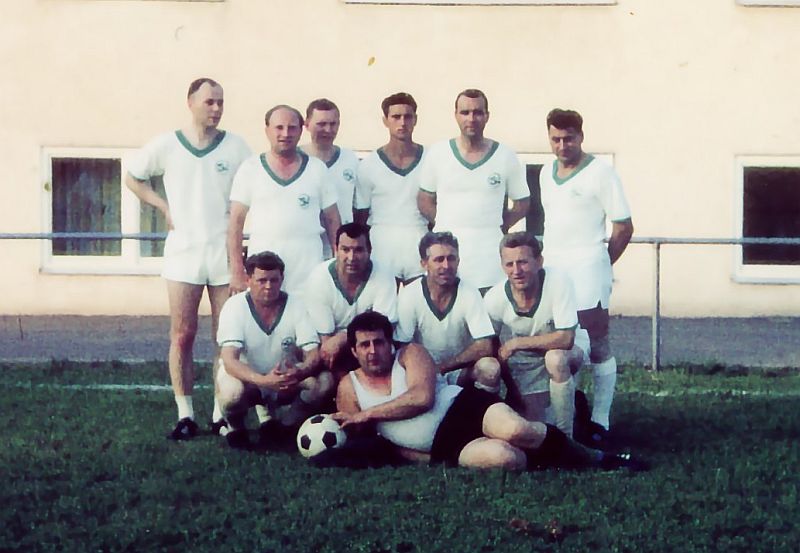 Stefan Lang leistete nicht nur viel Handarbeit für den TSV, er kickte auch in der AH, mit bekannten Größen wir Lörzer, Fochler, Brutschin, Bürkle, Cymbalista. Auf diesem Foto aus den Anfangsjahren der 1960er sehen wir ihn stehend ganz rechts.